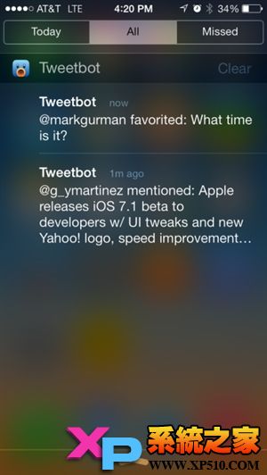 6. 通知中心的細微改進,當通知中心的消息清除時,顯示的是“無通知”,而不是“無未讀通知”。