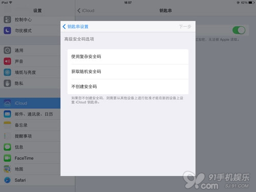 1、首先我們需要將系統升級到iOS7.0.3版本,在設置--iCloud--鑰匙串中開啟這一功能。