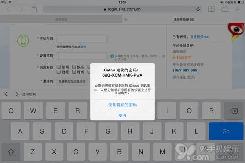 首先,iCloud鑰匙串應該會出現以上圖中所示的存儲密碼提示,不過筆者在測試了很多網站之後,均沒能成功,對於其中的原因目前還沒有合理的解釋。另外一個鑰匙串的功能則是幫助用戶生成密碼的功能,經測試在部分網站注冊賬號時會出現密碼提升功能,不過由於有些網站會禁止這項功能,所以也存在無法使用推薦密碼的情況發生。