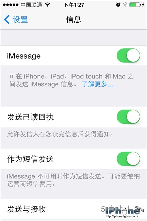 我們看到iMessage是關閉狀態,滑動開關啟用iMessage