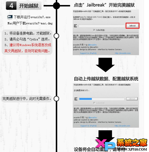 3.使用evasi0n的過程中,請避免運行一切和蘋果設備及itunes相關的任務,何不先離開電腦,去短暫的休息一下呢?
