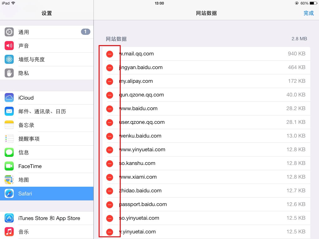 •這時在Cookie信息左側會出現紅色的“-”符號,在你需要刪除的Cookie 信息前點擊它,並按“刪除”後即可。