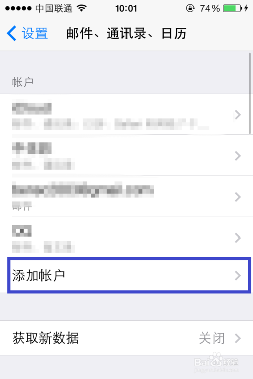 4、在日歷設置列表中,點擊“添加帳戶”選項,如圖所示
