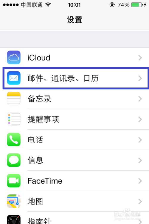 3、在設置列表中找到“郵件、通訊錄、日歷”選項,點擊進入,如圖所示