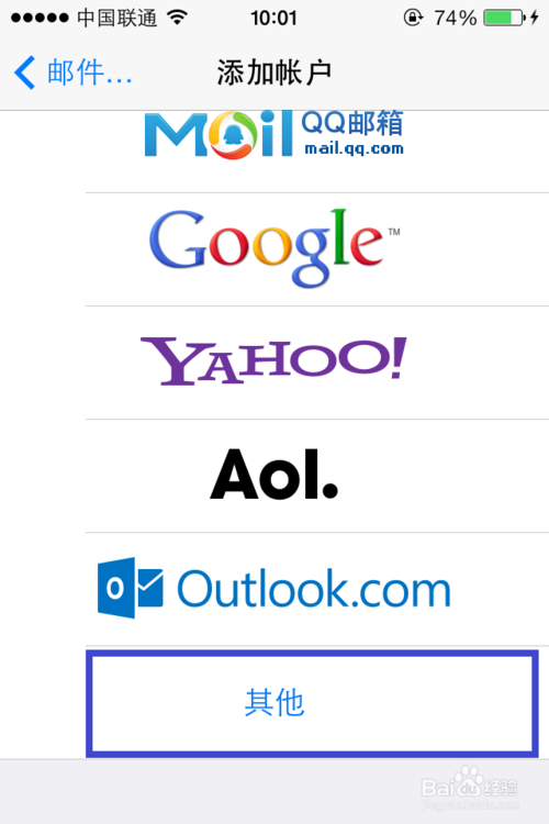 5、在添加帳戶列表中,選擇位於最底部的“其它”選項,如圖所示