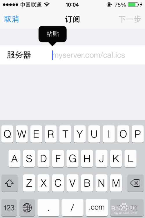 7、將從電腦上發送到手機上的日歷粘貼到服務器一欄,如圖所示