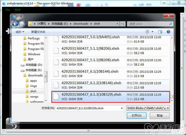 提示:請選擇之前添加固件版本的SHSH—【確定】—然後選擇本機iOS6.1.3固件的SHSH備份文件。