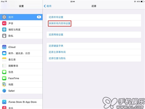第三步:然後選擇“抹掉所有內容和設置”;