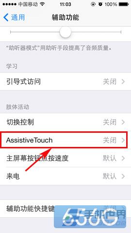 2)在“輔助功能”界面,大家就能看到“AssistiveTouch”功能,點擊進入,然後打開該功能按鈕即可。