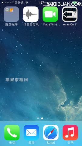 設備第一次重啟之後,會有提示讓你點擊設備界面中的“evasi0n 7”的圖標