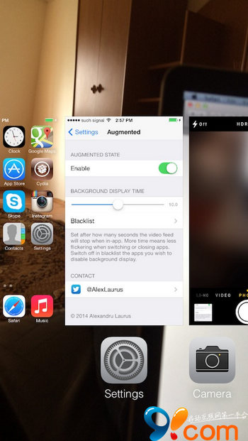 augmented可以為您替換桌面與鎖屏背景壁紙為後置攝像頭實時拍攝的畫面。無需任何激活手勢,進入設置後,開啟插件開關即可馬上完成壁紙替換,實現“透明屏幕”假象。augmented目前並不兼容iPad和iPod touch。