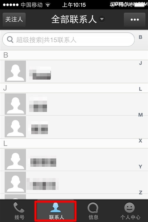 2、然後,打開QQ通訊錄,打開“聯系人”界面;