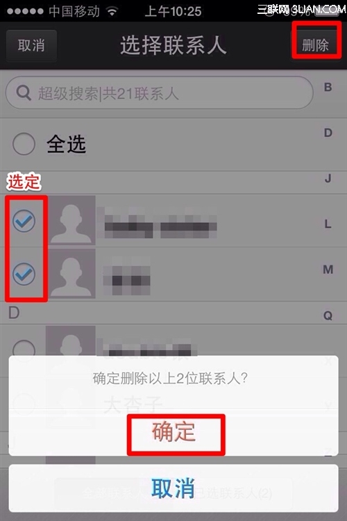 ios7怎麼批量刪除聯系人通訊錄
