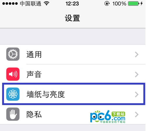 在設置列表中找到“牆紙與亮度”選項,點擊進入,如圖所示