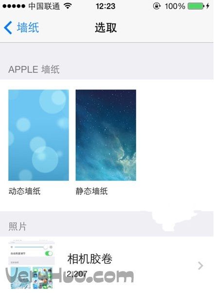 在壁紙選擇選項中,可以選擇蘋果的內置壁紙,也可以選取手機相冊中的圖片,如圖所示