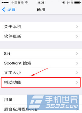 2)進入“通用”之後點擊“輔助功能”,找到“按鈕形狀”,然後點擊打開“按鈕形狀”即可開啟黑色鍵盤