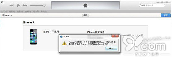 2.iTunes 會自動檢測到一台等待恢復的設備,點擊確定