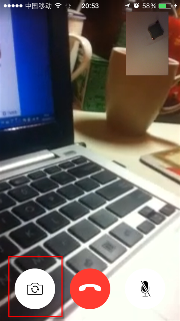 FaceTime視頻通話接通後,雙方即可看到對方的視頻圖像,點擊左下方第一個按鈕還可以實現實時的截圖。