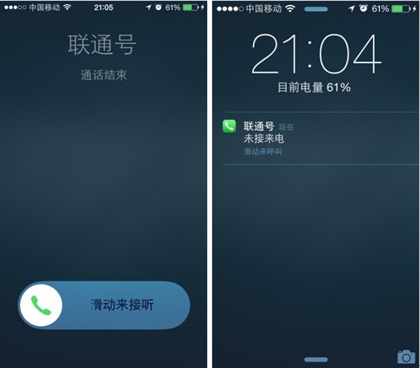 此時屏幕上會顯示“通話結束”,同時在鎖屏界面上會有未接來電的提示。