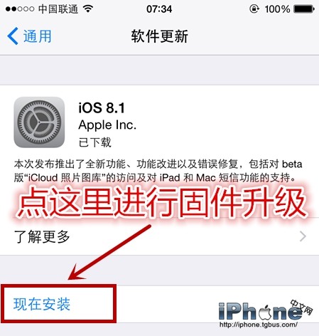 這次更新還是分兩種方法,一種是手機端接收到iOS8.1推送的用戶,在條件允許的情況下(有WiFi或流量非常充足)可以在手機上直接進行升級操作。還有一種就是通過電腦端下好iOS8.1固件,然後通過將設備連接至電腦的方式進行升級。