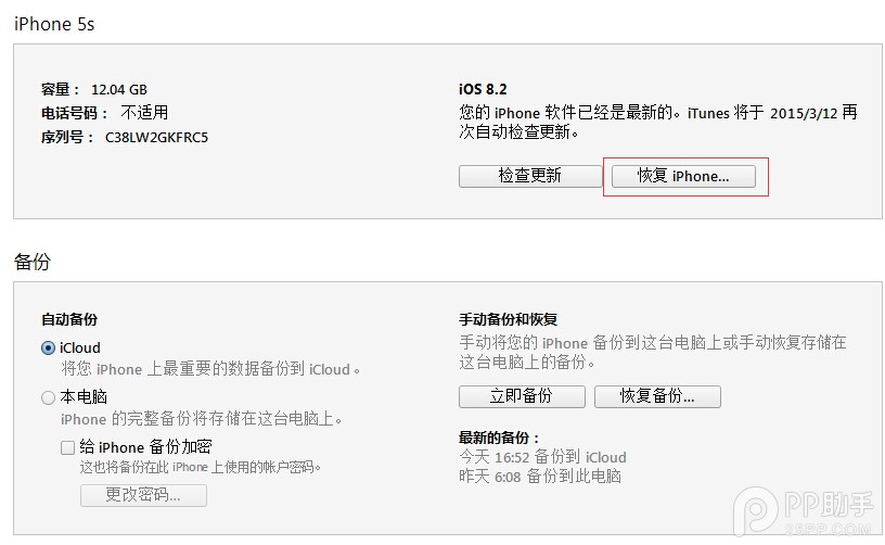 3、按住鍵盤上的 shift 鍵 iTunes 上的“恢復”,選擇iOS8.1.3固件下載