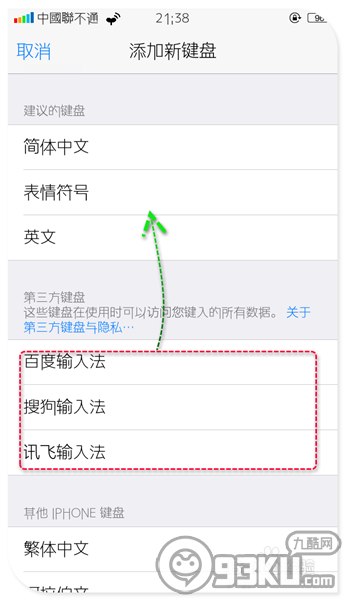 蘋果iphone6/ios8設置第三方輸入法為默認方法