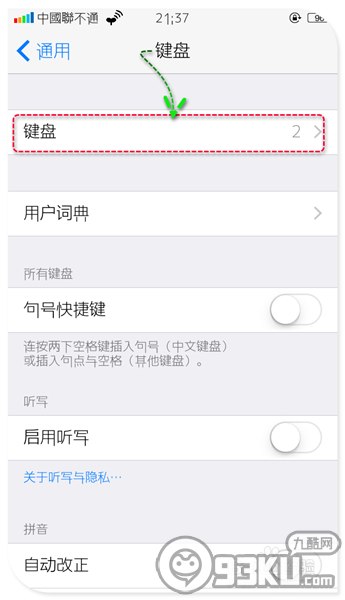 4、在“設置”——“通用”——“鍵盤”下打開“鍵盤”選項,如圖(就是鍵盤下面的鍵盤子項,你沒有看錯)。