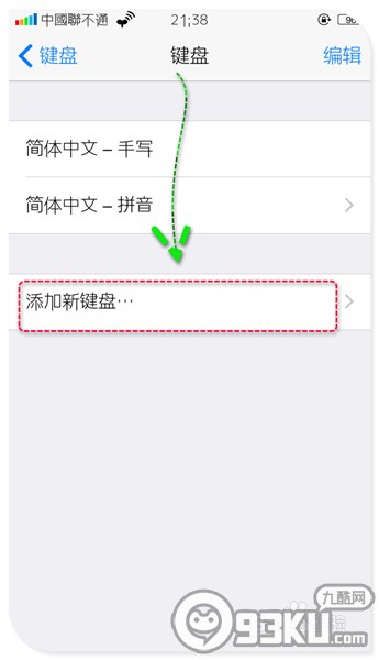 5、點擊“添加新鍵盤”,把剛剛安裝在ios設備上的第三方輸入法添加到鍵盤中,不添加是不能使用的,並不是安裝上就可以了哦。