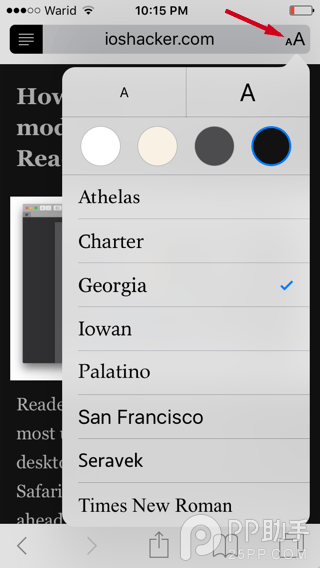 除了背景顏色之外,你還可以在這裡選擇不同的字體或者顏色,iOS9 全新的閱讀視圖模式為用戶提供了更多權限,那麼現在你期待 iOS9、或者是增強後的 Safari 的到來嗎?