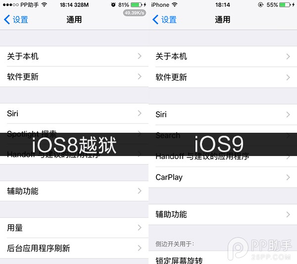 附上iOS8越獄後與iOS9字體效果對比圖: