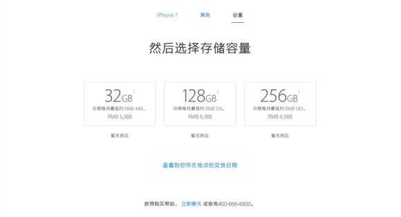 答:iPhone 7 32GB版本售價為5388元、128GB版本為6188元、256GB版本為6988元。iPhone 7 Plus 32GB版本售價為6388元、128GB版本為7188元、256GB版本為7988元。