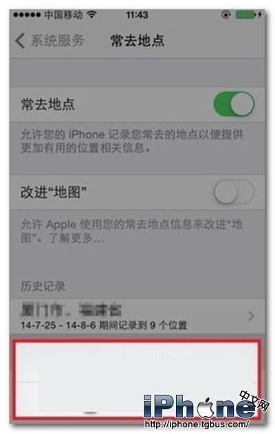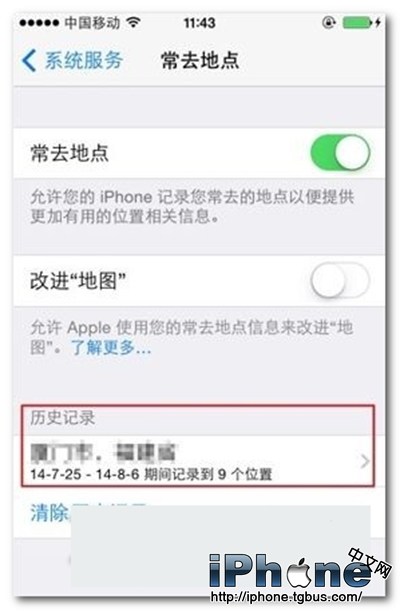 1、找到“常去地點”的歷史記錄並刪除。通過“設置”-》”隱私”-》”定位服務”-》”系統服務”-》“常去地點”,可以看到下面的“歷史記錄”,裡面記錄著詳細的時間和活動地點。最下面有個“清除歷史記錄”,擊並並確認清除記錄。