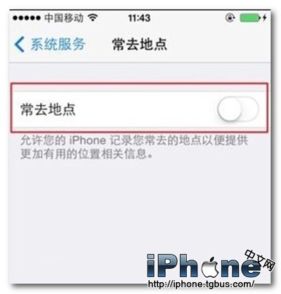 2、關閉“常去地點”的定位服務再回到屏幕上方,把“常去地點”功能關閉,回到灰色的狀態。