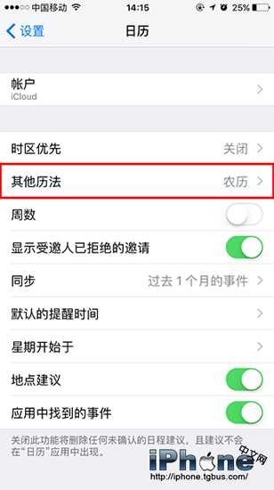在目前推出的iOS 10測試版中,鎖屏顯示的農歷時間為33年**月**日。這是因為農歷一個甲子60年為一個周期,按照天干地支算,其中第33年是丙申年,也就是2016年,這裡農歷的顯示應該是出現了一些bug。如果不需要顯示農歷時間的小伙伴可以進入日歷中將其關閉掉,關閉步驟如下: