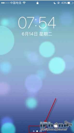 2、解鎖界面:解鎖界面開始變化了,在iOS10解鎖中一個有三個界面,取消了滑動解鎖,時間/日期字體加粗,狀態欄中間增加了一把鎖的圖標。向右劃從緊急呼叫變為通知中心的今天頁面!向左劃是相機功能。