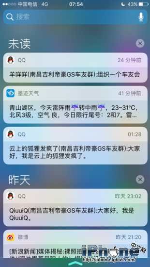 3、下拉通知:取消今天頁面增加了搜索框,通知顯示效果由線條分割改為條框式,這樣看起來消息更加突出。