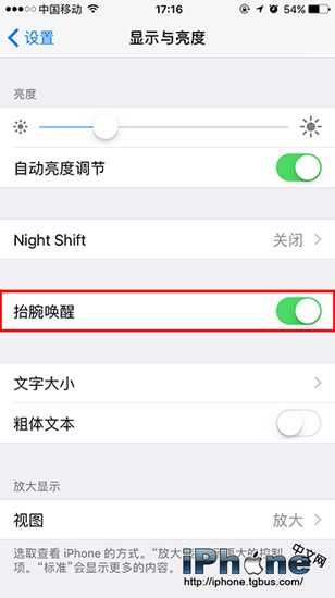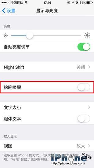 在iOS 10中有一個抬腕喚醒功能,開啟該功能後。只要拿起蘋果設備,手機就會自動亮起。雖然這個功能很方便,但如果你不需要這個功能,就可以在顯示與亮度中將抬腕喚醒功能關閉即可。