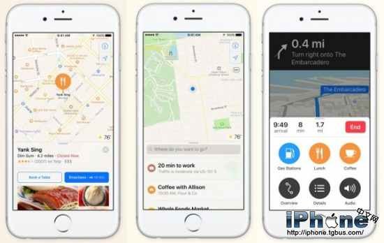 iOS10中的蘋果地圖會為你推薦你感興趣的地方,並給你推薦最快的路線。另外增加了實時交通信息,配置CarPlay的司機會得到蘋果地圖據實時交通信息提供的最優路線。