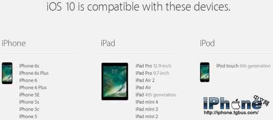 iOS 10支持其它設備有:iPod touch 6