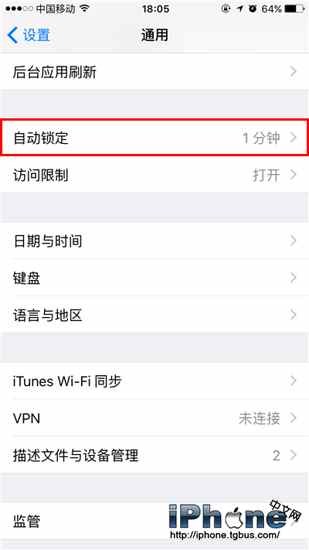 iPhone默認的鎖屏時間是一分鐘,精織手機超過一分鐘後iPhone就會自動鎖屏。如果你想更改iPhone的鎖屏時間,可以在自動鎖定選項中修改鎖屏時間。操作步驟如下:
