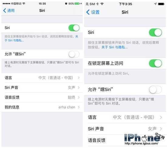 Siri從【通用】中被提升至【設置】欄目,並且新增了【在鎖定屏幕上訪問】選項。