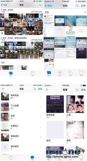 而在iOS10的【相簿】中,首次加入人臉識別也讓這個古老的應用新增了一些生機。打開iOS10相簿可以看到,系統會根據照片的內容分門別類,分別提供【人物】【地點】【視頻】等詳細分類,方便用戶浏覽。