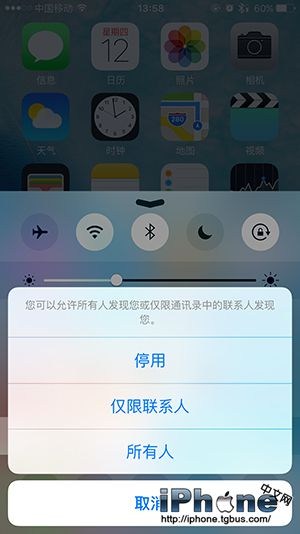 打開【控制中心】,點擊【AirDrop共享】,在彈出的選項中選擇【停用】即可