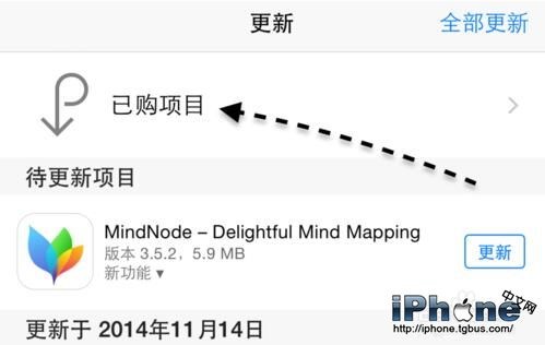 在蘋果手機上的 App Store 的更新欄目裡,有一個“已購項目”列表,但這裡是顯示的是我們下載的所有應用軟件,包括免費的和付費的。