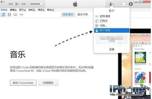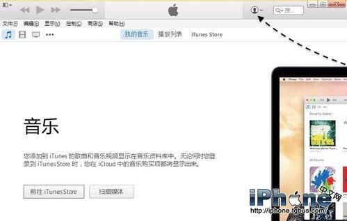 這裡以當前最新的 iTunes 軟件版本為例,打開以後請點擊窗口中的賬號圖標,如圖所示