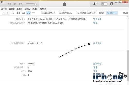 當顯示帳戶頁面出來以後,請找到“上次購買的項目”一欄,點擊右側的“顯示全部”選項。