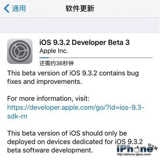 iOS9.3.2 Beta3可以在蘋果開發者中心下載,測試用戶也可以直接OTA更新。另外非測試用戶可通過安裝iOS9.3.2 Beta3的描述文件,然後可以檢測OTA更新也可以。