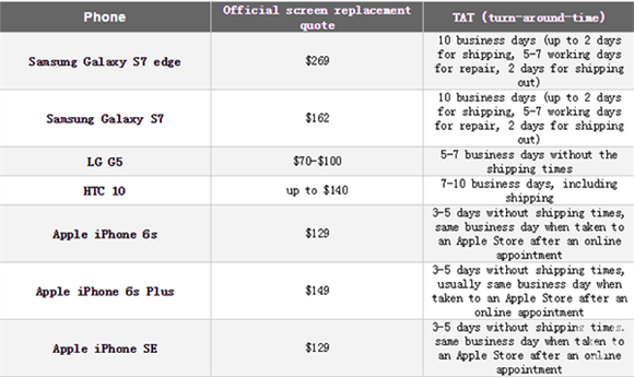 至於HTC 10 ,這款HTC最新的旗艦手機如今尚未發貨,不過據說更換屏幕的成本為140美元。為HTC10更換屏幕所要花費的時間為7-10個工作日。