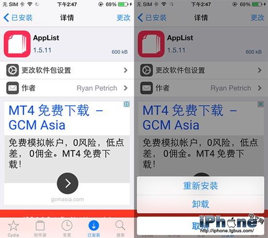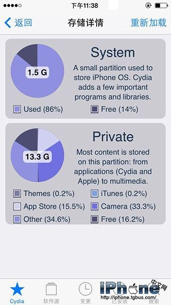 具體步驟:【Cydia】-【已安裝】-【存儲詳情】