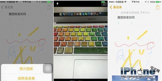 接著是插入圖片或是錄像,這裡可以直接訪問圖庫中的圖片和視頻,也可以現場拍攝。